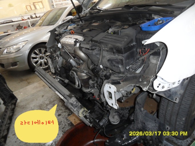 파손된 라디에이터를 신품으로 교체했습니다. 라디에이터 교체 시 냉각수 라인 세척 및 신규 냉각수 주입 작업을 병행하여 냉각 시스템의 효율을 극대화했습니다.